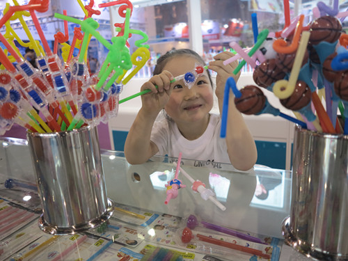 圖為創(chuàng)新吸管吸引小孩子的目光