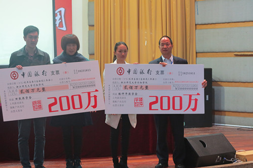 同日,身為浙師大兼職教授的樓總也以個(gè)人的名義在浙江師范大學(xué)成立了一個(gè)“樓仲平基金會(huì)”,每年規(guī)劃獎(jiǎng)學(xué)金去幫助學(xué)校里有需要的學(xué)生,鼓勵(lì)他們更好地學(xué)習(xí)和完成學(xué)業(yè)。樓總也希望通過(guò)校企合作的方式讓一部分學(xué)生把我公司作為學(xué)生的實(shí)習(xí)基地。