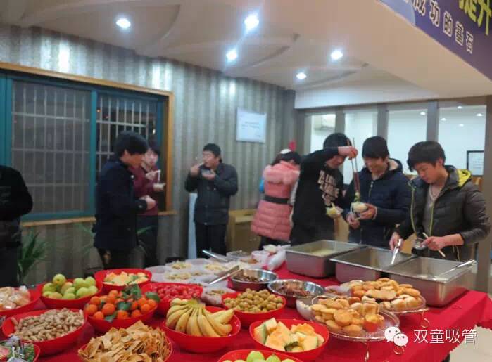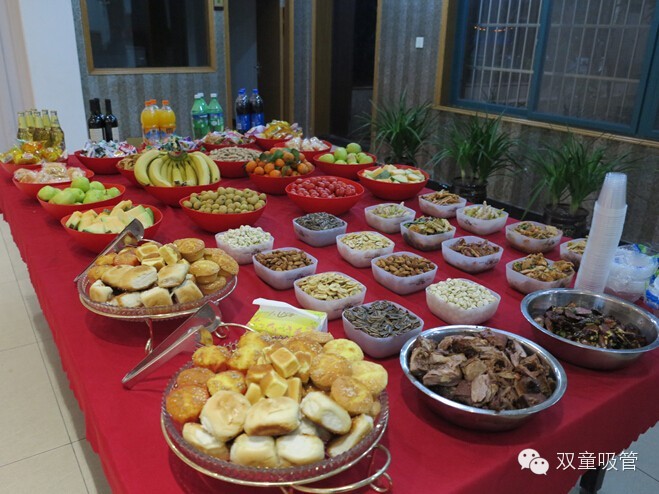 昨天晚上,我們雙童吸管的九樓閣迎來(lái)了2015年第一場(chǎng)生日會(huì)!來(lái)自各個(gè)車(chē)間、各個(gè)崗位的1月壽星們紛紛來(lái)到9樓,參加這場(chǎng)別開(kāi)生面的生日會(huì)!而為了這場(chǎng)生日會(huì),我們最新上任的后勤美女主管宋小翩更是下足了心思,把一切事宜都準(zhǔn)備得井井有條,看看這擺盤(pán),誘人不?