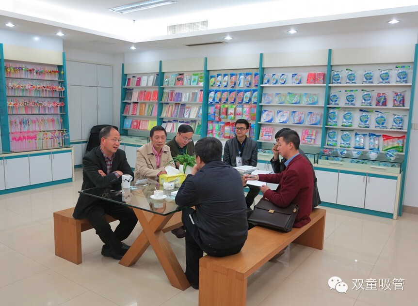 小劉記者剛走沒(méi)多久,兩批貴客像是約好了似的都來(lái)到雙童。一批是我們的義烏市紀(jì)委書(shū)記等六七位領(lǐng)導(dǎo),另一批則是二三十號(hào)阿里巴巴同學(xué)會(huì)的boss們。我們的幾位高層領(lǐng)導(dǎo)分頭行動(dòng),帶領(lǐng)著這兩支隊(duì)伍參觀雙童的節(jié)能降耗、員工寢室、產(chǎn)品樣品房……不得不說(shuō),幾位領(lǐng)導(dǎo),你們真是蠻拼的,可以去考導(dǎo)游證啦!尤其是當(dāng)家人,在“導(dǎo)游工作”結(jié)束后,搖身一變成了會(huì)議室里的“講師”,為我們的阿里巴巴同學(xué)會(huì)的boss們上了一堂精彩的《“雙童”為什么堅(jiān)持只做一根吸管》課程,到今天,都還有同學(xué)來(lái)找吸管妞要昨天的課件呢!