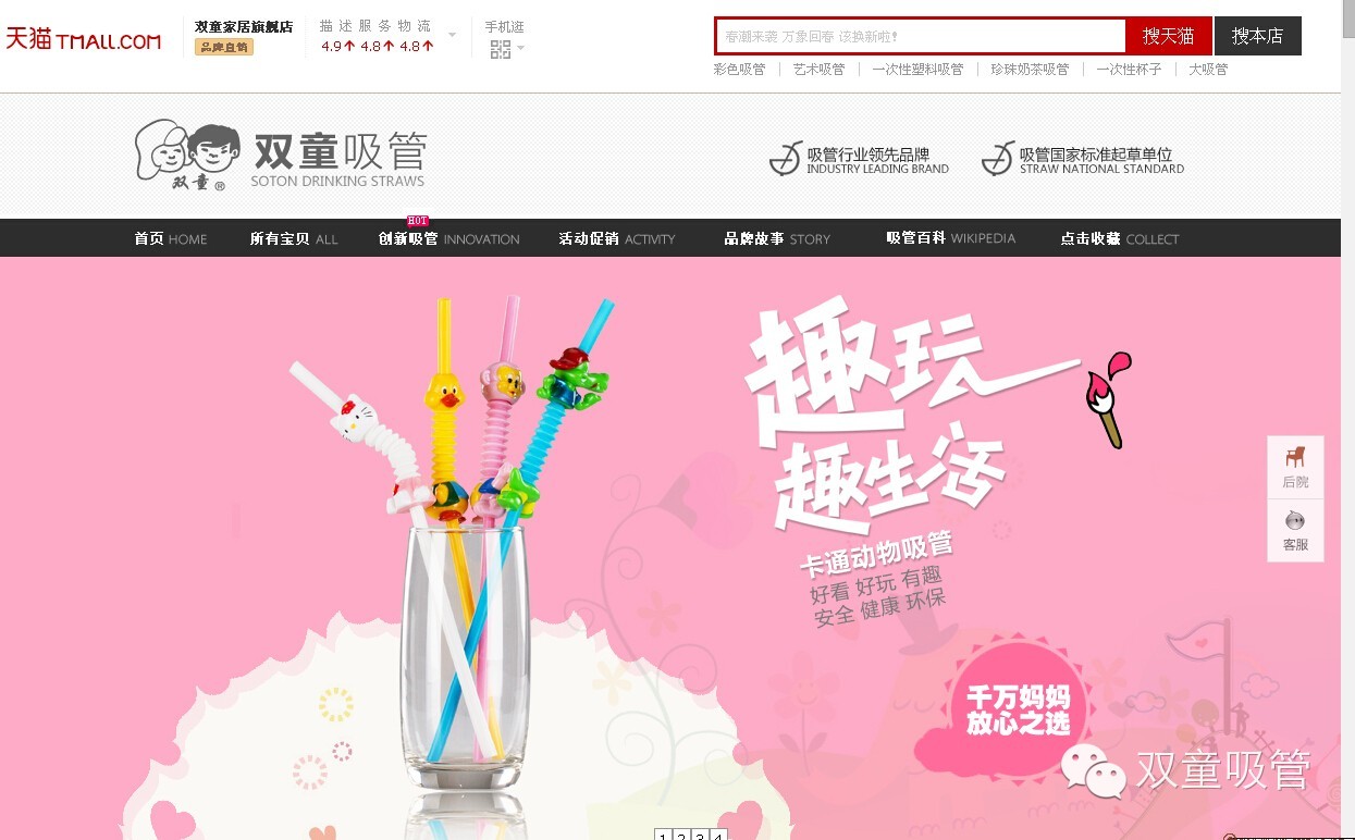 當(dāng)然@雙童吸管 的電子商務(wù)發(fā)展過(guò)程,也是伴隨著時(shí)代發(fā)展的腳步而與時(shí)具進(jìn)的。近些年以來(lái),在信息化浪潮推動(dòng)下,企業(yè)和市場(chǎng)、企業(yè)和客戶的傳統(tǒng)階梯式營(yíng)銷格局逐漸被打破,企業(yè)直面市場(chǎng)、直面客戶的溝通方式被信息化和迅猛發(fā)展的移動(dòng)互聯(lián)網(wǎng)無(wú)限拉近,企業(yè)的銷售格局進(jìn)一步被扁平化。快速與市場(chǎng)融合,快速與消費(fèi)用戶互動(dòng)溝通的體驗(yàn)需要,要求企業(yè)轉(zhuǎn)變?cè)袉渭兊腂2B電子商務(wù)推廣應(yīng)用模式,改而需要進(jìn)一步建立與顧客直面互動(dòng)體驗(yàn)的B2C電子商務(wù)銷售模式。