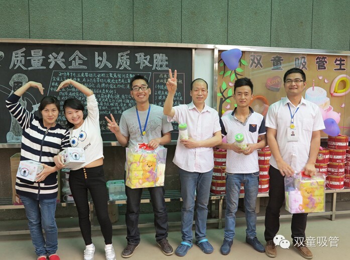 本月生日會,除了人手一個(gè)必備的生日蛋糕以外,我們還組織了“二人三足”的小游戲,獲勝者能得到我們精心準(zhǔn)備的獎(jiǎng)品!壽星們還能參與抽獎(jiǎng),公司后勤部可是下了血本,設(shè)立了一二三等獎(jiǎng),可是實(shí)實(shí)在在的紅包哦!吸管妞算是看出來了,“皆大歡喜!滿載而歸!”原來是這次生日會的主題啊?。∽詈筮€是要祝福雙童的壽星員工們,生日快樂,在雙童的每一天都像生日這天一樣這么開心哦!