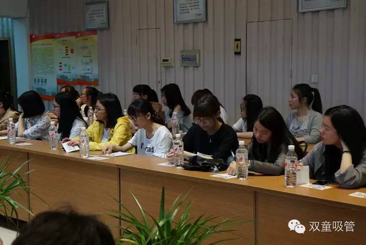 參觀完畢,大家就坐下來好好和當家人進行溝通互動吧!童鞋們紛紛把剛才參觀時所產(chǎn)生的疑慮和困惑一一向當家人進行提問?!叭绻麃砟銈児緦嵙?,你們看重員工的什么素質(zhì)呢?”“雙童是如何保持源源不斷的創(chuàng)新能力呢?”“雙童的商標背后有沒有什么故事?”各種千奇百怪的問題都被童鞋們提了出來,而當家人則是把每個問題都解釋得清晰明了,童鞋們也是拿著筆記把各種數(shù)據(jù)和關鍵詞都記了下來,據(jù)說回去還要交報告和作業(yè)呢!這么認真,也是拼啦!