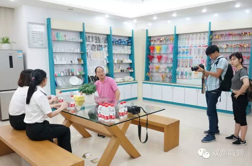 首先第一站就是我們的樣品房。樓總詳細(xì)的向客人介紹了雙童近年來產(chǎn)品轉(zhuǎn)型升級的一些代表產(chǎn)品,如愛心吸管、哈哈吸管等。在看到賦予了更多使用功能與感情色彩的創(chuàng)新吸管產(chǎn)品之后,客人們也都是紛紛稱贊,驚嘆之心溢于言表!
