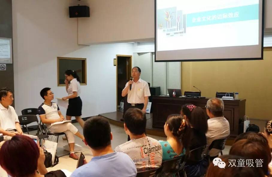 當家人樓總把整個課件都分為了三個篇章,分別為雙童企業(yè)文化的原始形成、雙童文化的轉(zhuǎn)折和變革、雙童文化的邊際效應(yīng)體現(xiàn)。樓總用經(jīng)營雙童的親身經(jīng)歷和發(fā)展過程、脫離于純粹理論的方式,向大家講述了企業(yè)文化的重要性。