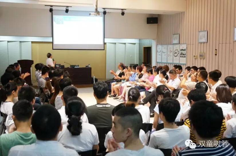 原來,當晚的學習會聽課人員中,除了我們雙童本來要來參加的管理層以外,還有世界義商學院文化班的四五十位學員們??蓜e看說是學員,他們可都是由許多的企業(yè)界前輩、公司老總及業(yè)界精英組成的哦!所以,學習會一開始,熱情的雙童人們也用雷鳴般的問好和掌聲向他們表示了歡迎!