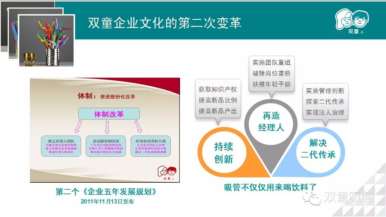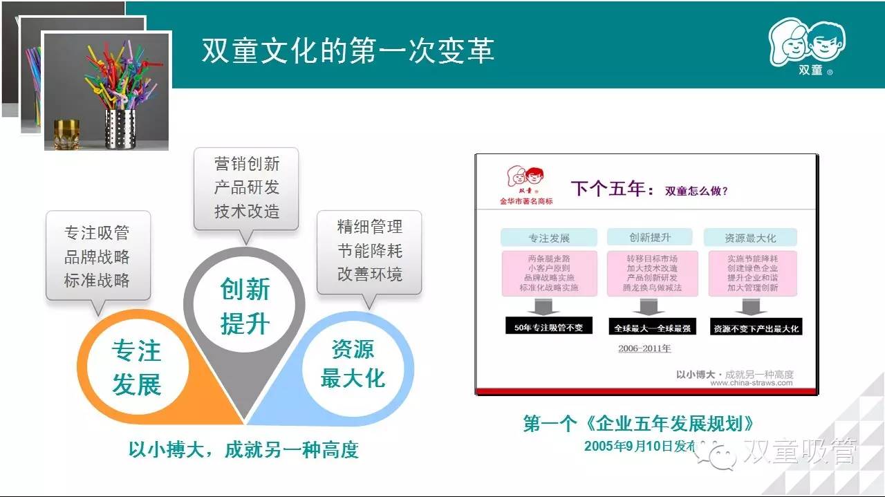 今天,中國的傳統(tǒng)制造業(yè),不管生產(chǎn)的是鞋子、衣服,還是五金、家電,在快速上升的成本和越來越薄的利潤的前堵后截下,簡(jiǎn)單規(guī)模擴(kuò)張已不堪重負(fù),只有轉(zhuǎn)型升級(jí)一條路。然而,說起來容易做起來難。雙童吸管的做法,雖然未必適用于每家企業(yè),但無疑是有益的啟示。