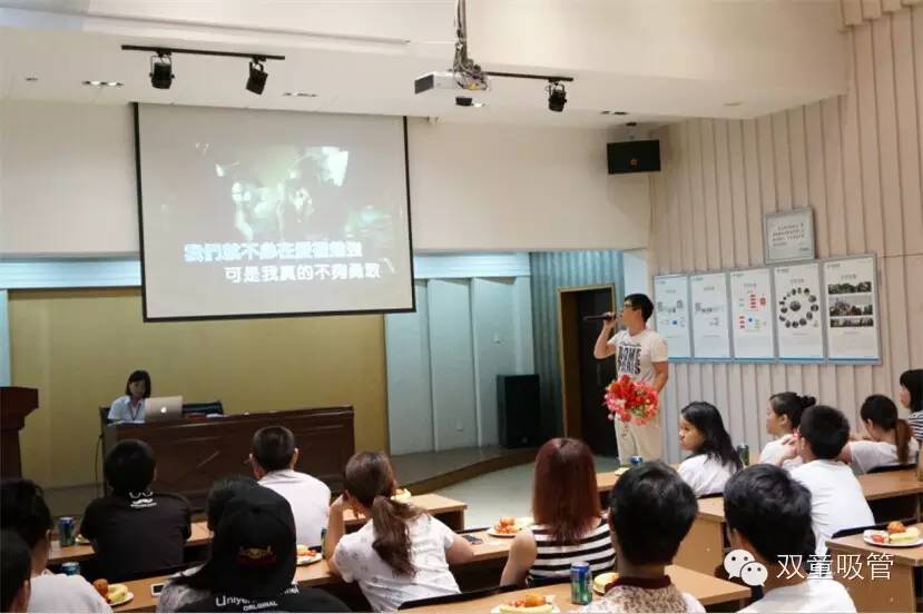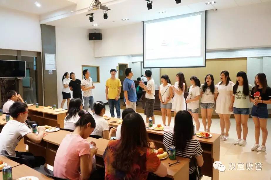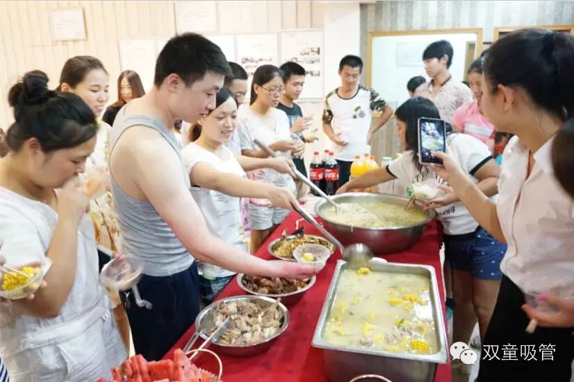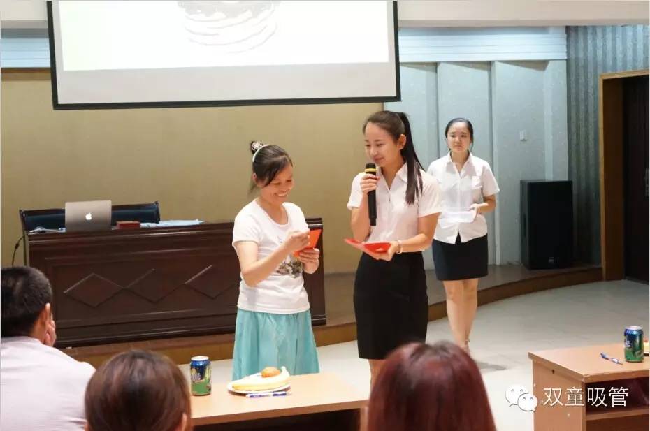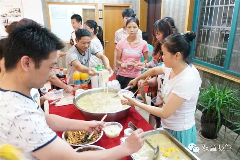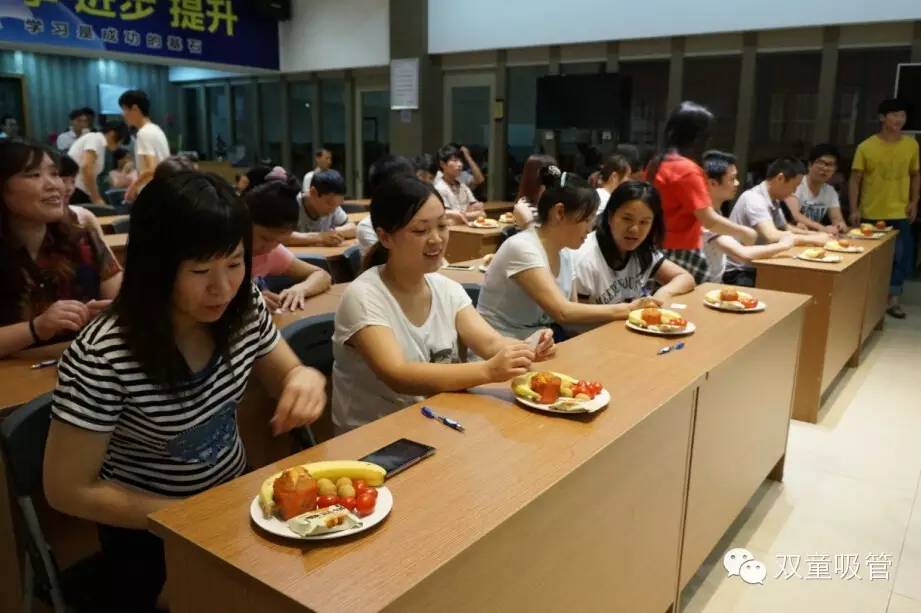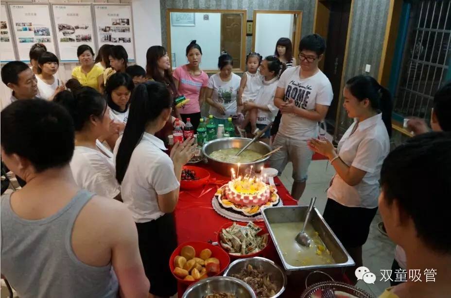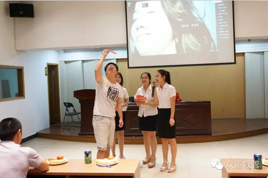 晚上七點,雙童七月份的壽星們都團聚在九樓閣啦!四五十位的壽星們在享用了公司為他們準備的美味長壽面和玉米排骨湯后,像小學(xué)生似的齊刷刷坐在了座位上,等待一場盛會的來臨!