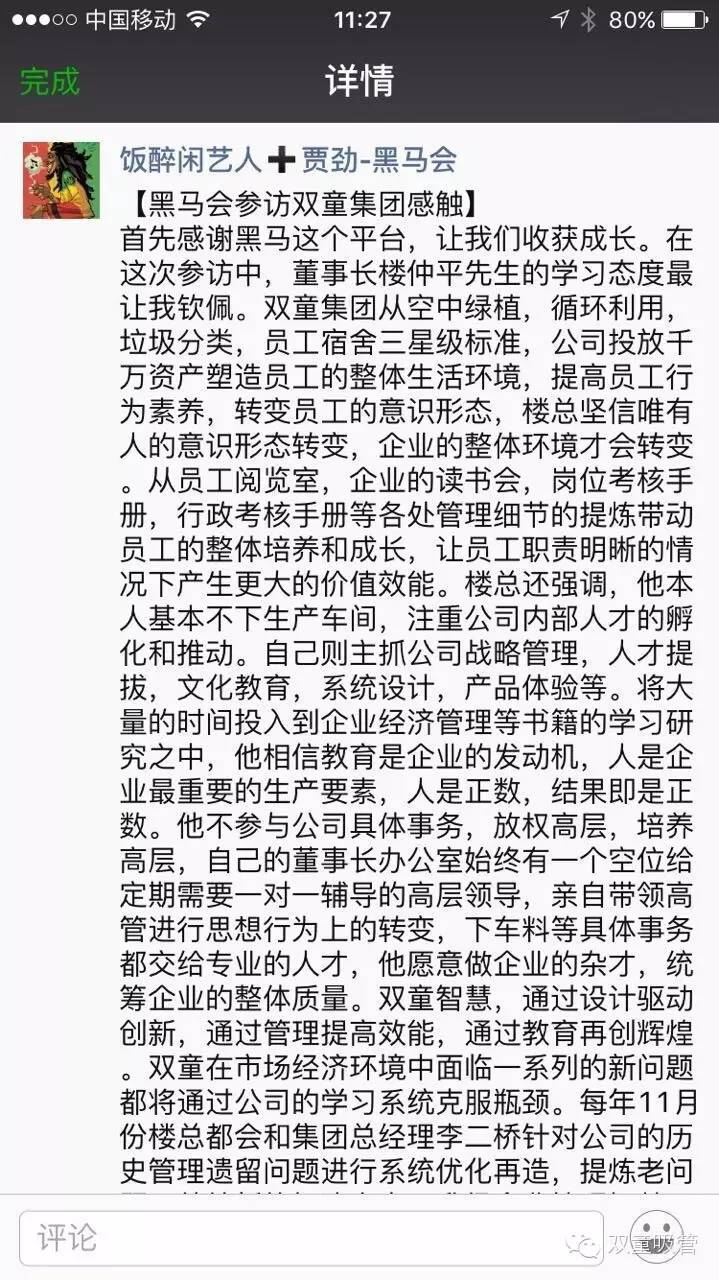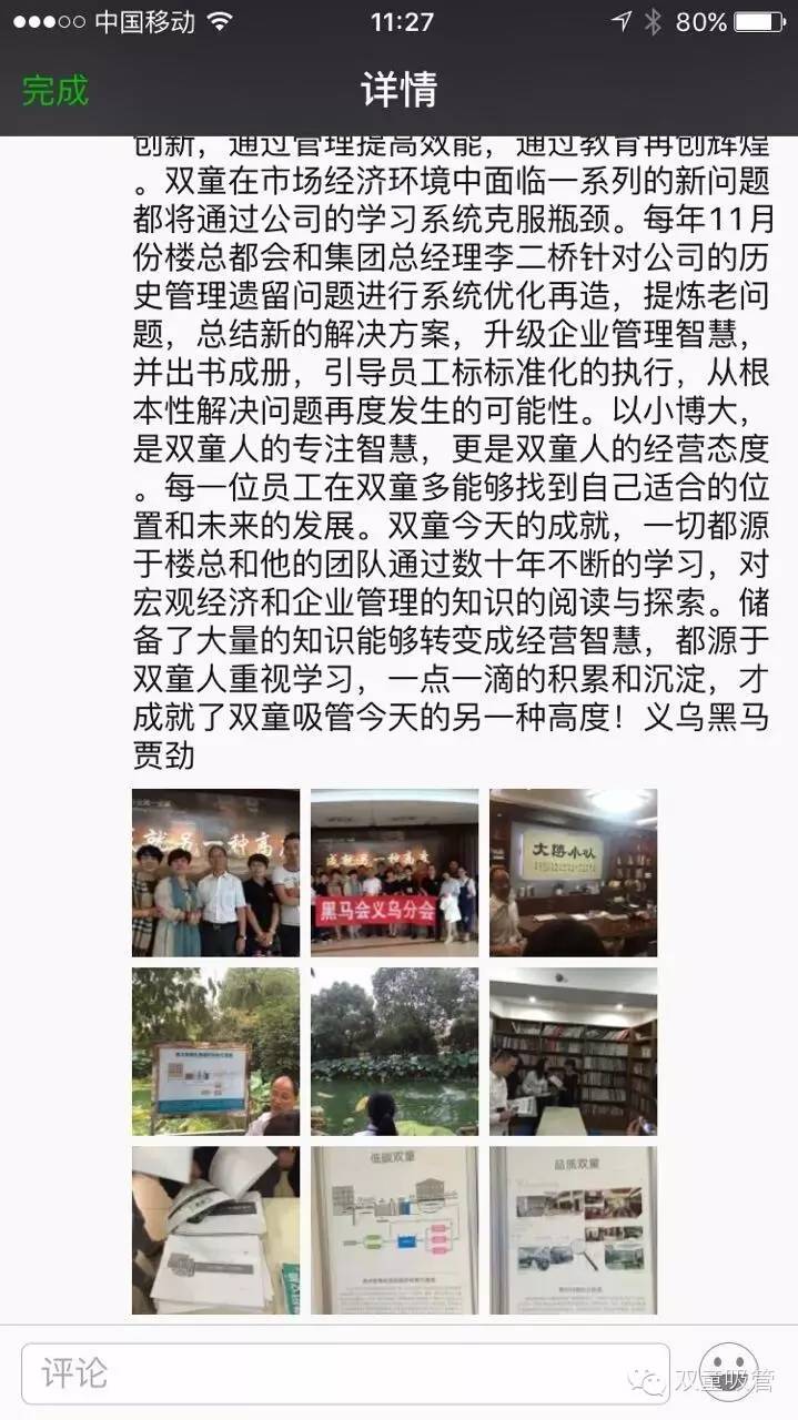 那么下面就允許吸管妞偷個(gè)懶,把黑馬會義烏分會昨天發(fā)布的參訪微信和會員的參觀感悟搬過來,從他們的視角和角度出發(fā),看看我們雙童又會是個(gè)什么樣子呢?