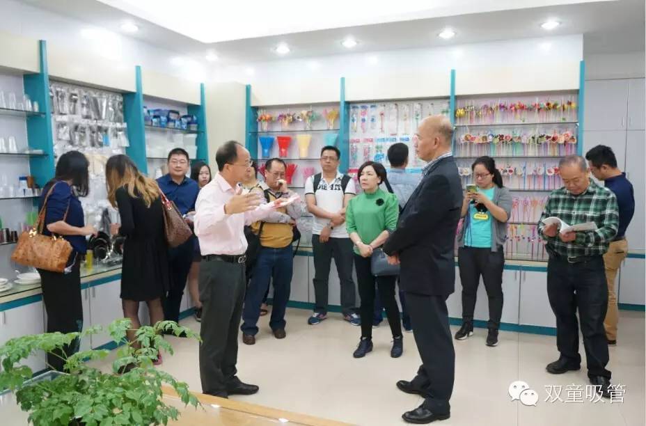剛到雙童,當(dāng)家人樓總便帶領(lǐng)商貿(mào)考察團(tuán)的朋友們參觀我們的樣品房,展示了一系列他們從沒見過的創(chuàng)新吸管,讓他們驚訝的是,原來一根小小的吸管也可以有這么多的功能可以開發(fā)。