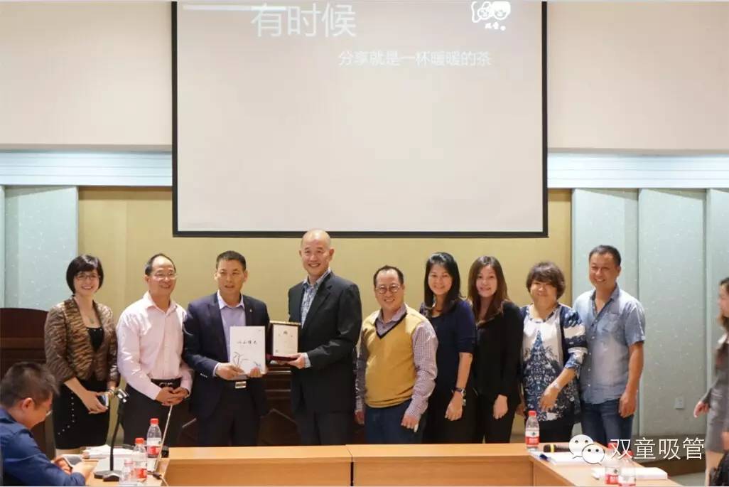 會后,馬來西亞商貿(mào)考察團(tuán)還贈送了我們?nèi)沼闷穮f(xié)會一塊精美的牌匾,為表感謝,我們回送了對方每人一份的雙童禮品,內(nèi)含我們雙童的文化手冊四本及精美的創(chuàng)新吸管套裝!