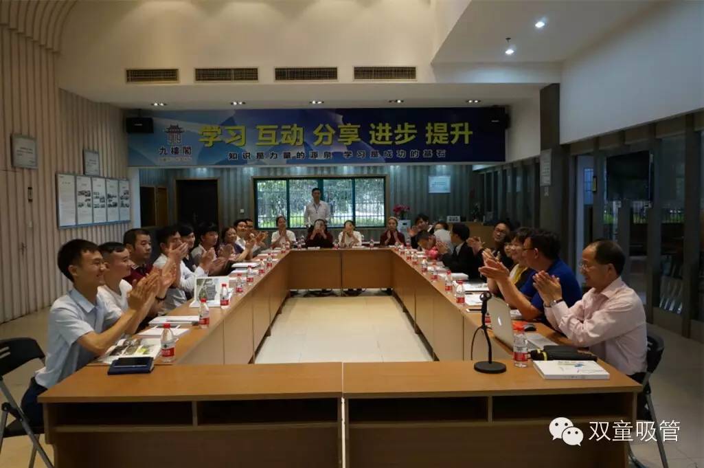 參觀完畢后,大家在九樓閣里開了一個小型的“學(xué)習會”,當家人樓總向他們?nèi)娼榻B講述了關(guān)于雙童吸管的種種方面,也是贏得了在座的各位老總們的一致掌聲!講述后,大家和樓總進行了積極的互動,從企業(yè)經(jīng)營的各個方面向樓總發(fā)問,大家一起相互交流溝通,共同進步,共同提升!