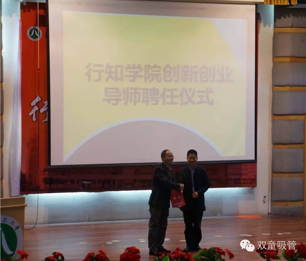 下午兩點(diǎn)半,宣講會(huì)正式開始!首先是舉辦了一個(gè)簡(jiǎn)單隆重的導(dǎo)師聘書授予儀式,當(dāng)家人樓總從校領(lǐng)導(dǎo)手中接過了這份創(chuàng)新創(chuàng)業(yè)導(dǎo)師的證書,也意味著我們雙童和學(xué)生們的交流也會(huì)更加頻繁,和校方以后會(huì)合作得更加緊密!