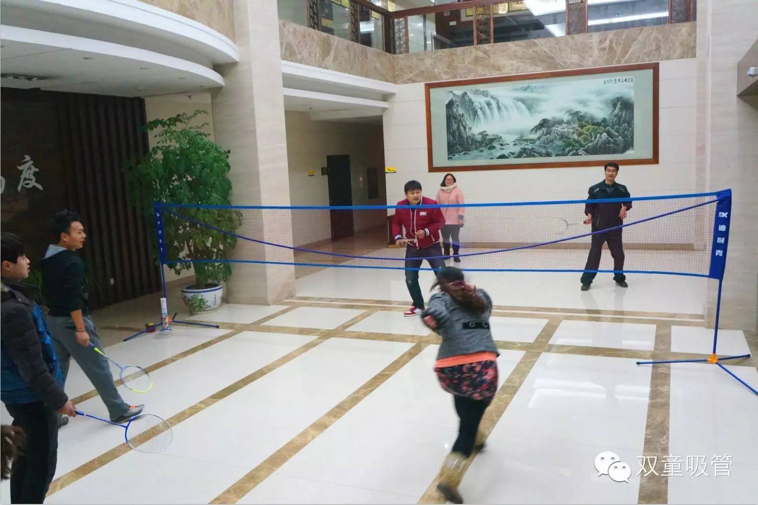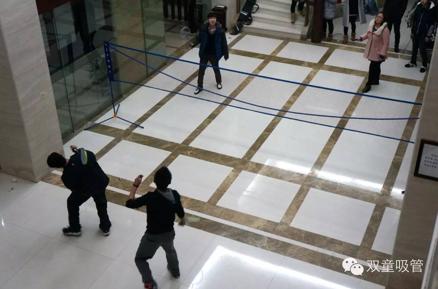 近日,為驅(qū)逐冬日的寒冷,雙童的小伙伴們在行政樓一樓舉辦了一次精彩的羽毛球賽。對了,為了讓比賽更顯公平,我們專門采購標(biāo)準(zhǔn)的羽毛球網(wǎng),相比上次五彩繽紛的吸管球網(wǎng),現(xiàn)在的球網(wǎng)可是正規(guī)多了。