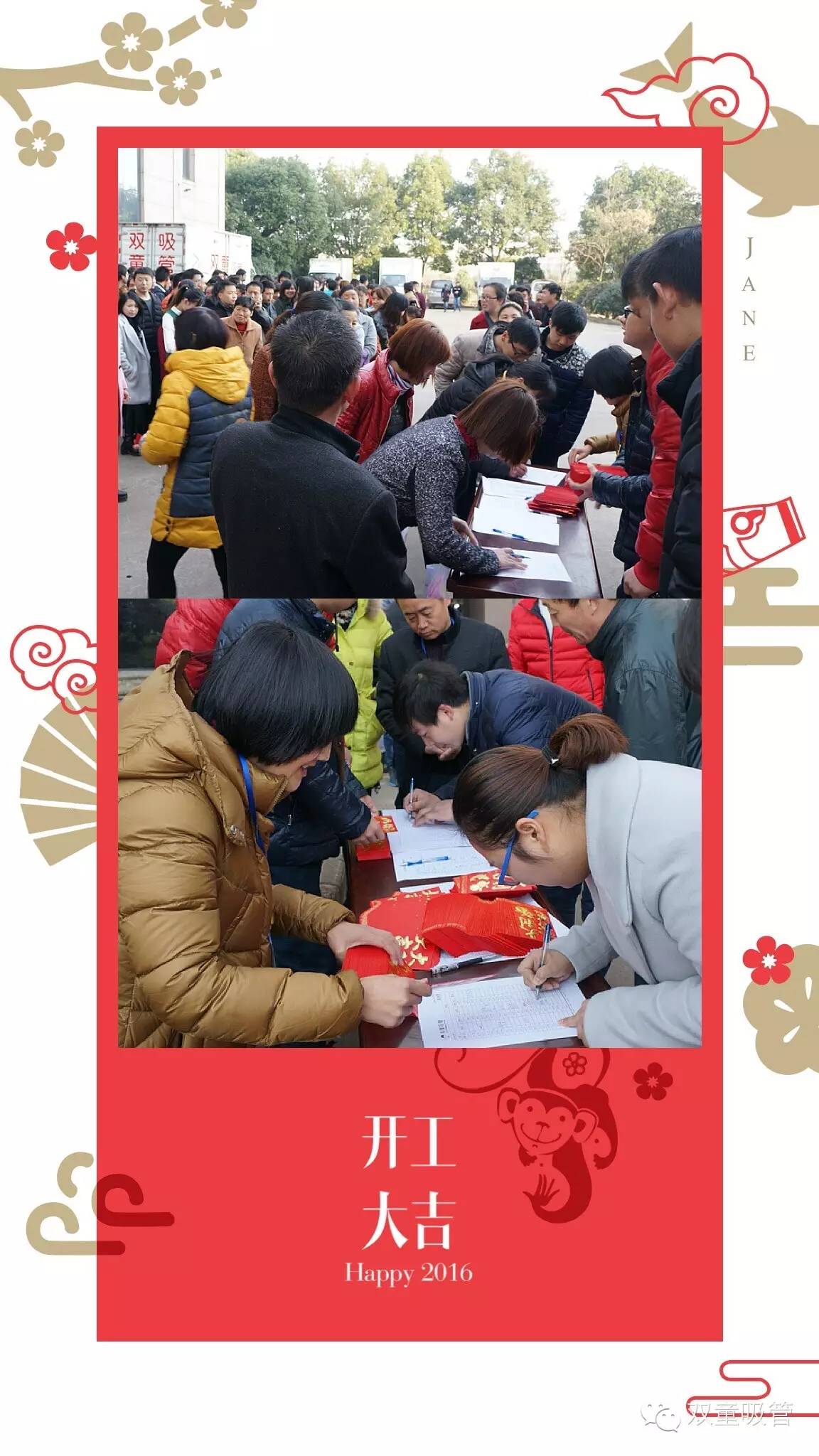 哈嘍!親愛(ài)的雙童粉絲們!闊別了半個(gè)月,我吸管妞又回來(lái)啦!新年伊始,吸管妞謹(jǐn)代表雙童吸管的全體員工在此給大家拜個(gè)晚年!同時(shí)恭祝您猴年行好運(yùn),財(cái)源滾滾來(lái)!