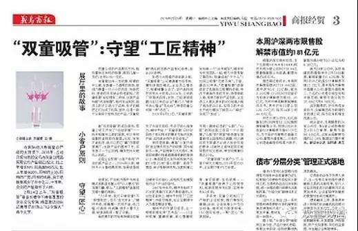 《義烏商報》大版面報道:《“雙童吸管”:守望“工匠精神”》