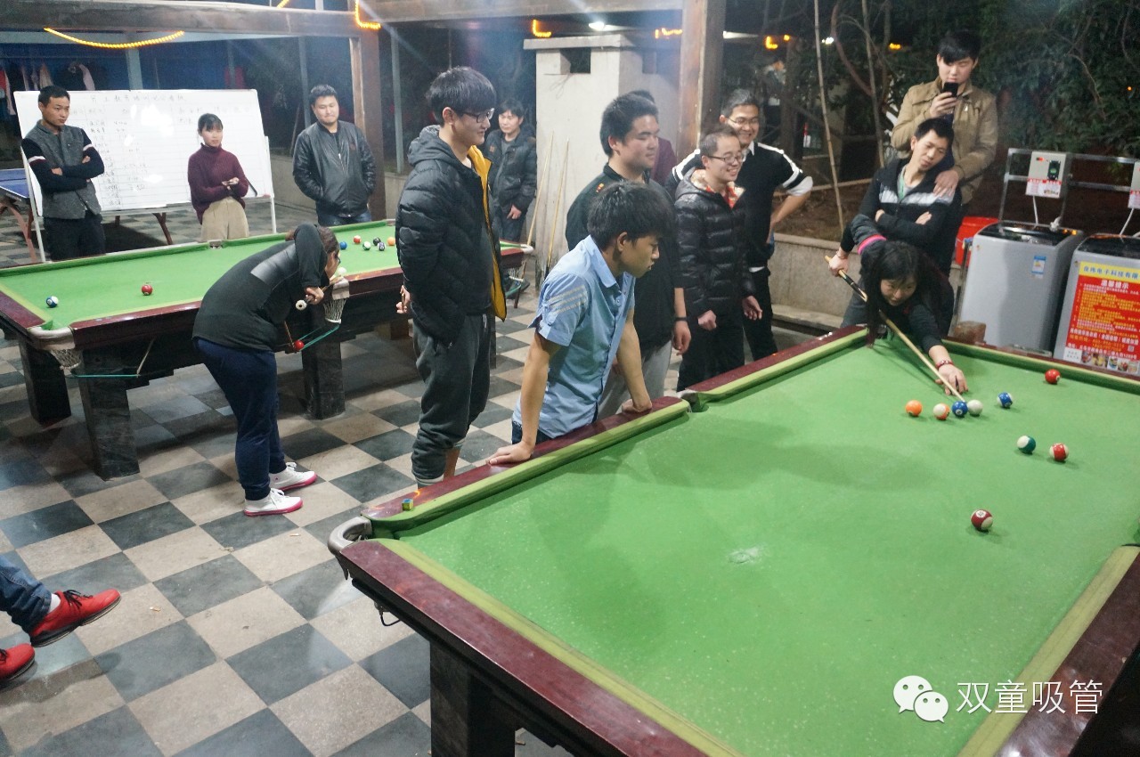 這不,為了讓比賽結(jié)果更加公平公正,吸管妞可是搬來了大黑板,一場比賽結(jié)束就馬上把結(jié)果公開。挑隊友咯!兩位隊長猜拳挑完了自己的隊友,兩隊兩兩PK,比賽懸念叢生,精彩紛呈,把比賽推進一個又一個的高潮。雙童員工們的臺球水平真是堪比專業(yè)選手呀!