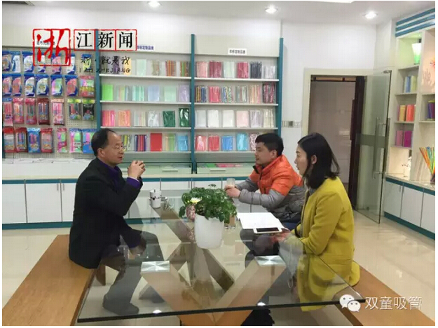 在之前,人民網(wǎng)的美女記者王婕來雙童采訪當(dāng)家人樓總,并在回去后寫了一篇《以小博大,一根掘金吸管的工匠精神》新聞,被放在了人民網(wǎng)《天下浙商》版塊的頭條,引起了社會的熱門關(guān)注。