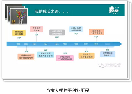 樓仲平是義烏商人,他14歲就跟著父親,挑著貨郎擔(dān)跑到江西,做起“雞毛換糖”的行當(dāng),而我見到的樓仲平穿著西裝革履、儒雅大方、笑容溫暖,很難想象他曾經(jīng)撿過農(nóng)藥瓶、賣過牙刷、搞過養(yǎng)殖,15年的時(shí)間干了二十多個(gè)行當(dāng)。