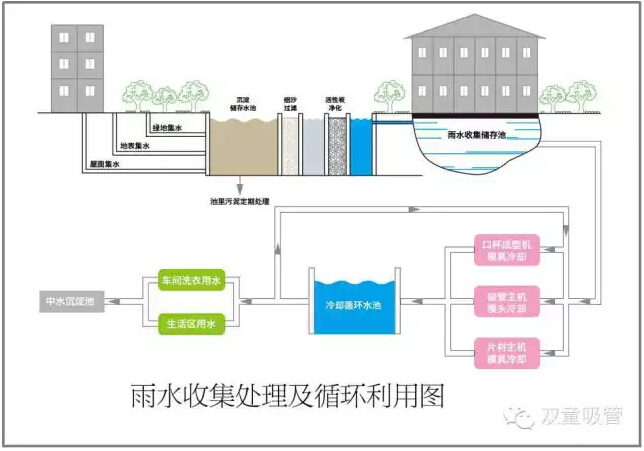 “雙童”的廠區(qū)內(nèi)有著縱橫交錯的管道,這些管道“上天入地”,把一個個雨水坑和蓄水池有序連接,并延伸進廠區(qū)車間和生活區(qū)的眾多角落。