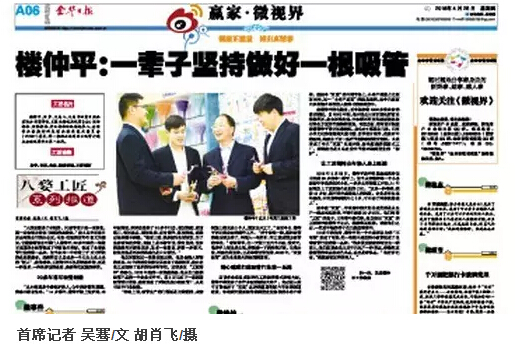 【金華日報大版面報道“雙童”的工匠精神】樓仲平:一輩子堅持做好一根吸管!