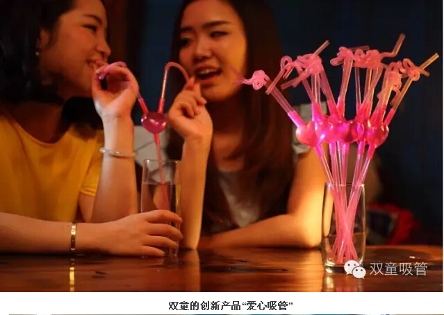 “其中,有30多種是近年開發(fā)的新產(chǎn)品。”李二橋說,陳列的各式各樣吸管,既有幾厘一支的,也有10元一支的。他拿起一款叫做“風(fēng)車吸管”的產(chǎn)品,只見吸管的中上部安裝著一個(gè)透明的球體,球體內(nèi)懸著一只小小的風(fēng)車,吮吸飲料,里面的風(fēng)車就會(huì)快速旋轉(zhuǎn)。“剛開發(fā)出來時(shí),由員工的子女進(jìn)行了試用,孩子們都把它們當(dāng)成了玩具,這是一款十分具有個(gè)性特點(diǎn)的產(chǎn)品。‘雙童吸管’類似的創(chuàng)新產(chǎn)品有40多類,總計(jì)300多種。”