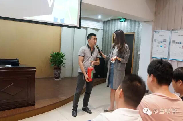 滅火器?老師!我來操作!瞧!我們雙童人操作起滅火器還真是有模有樣呢!雙童人基本上都會操作滅火器的哦!這可得感謝我們廠長的培訓哦!