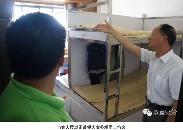 就連我們的不銹鋼床,都是我們自己設計,在建造之初就已經(jīng)焊死在地上,防止員工發(fā)生安全事故的同時,也最大程度上保證了寢室的整潔。
