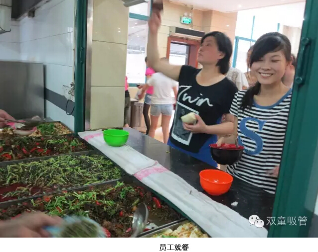 說到大家最關心的食堂餐飲問題,當家人樓總介紹,在餐飲方面,“雙童”為員工免費提供一天四餐的各色餐飲,每月伙食配制的成本不少于450元。