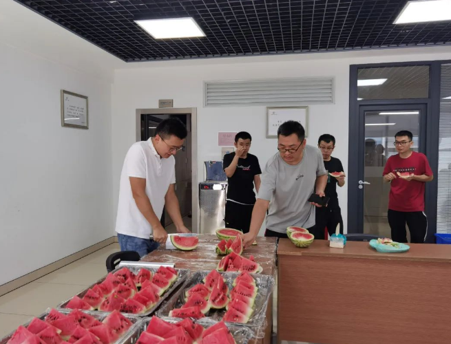 不久前,“雙童”的空中生態(tài)園里,豐收了一大批的西瓜!吸管妞立馬為在車間忙碌的一線員工們送上了降暑西瓜,“雙童”總經(jīng)理李二橋更是親自上陣“殺”瓜,他還給大家透露,在他的安徽老家也有一片瓜田,論切西瓜,他可是專業(yè)的!