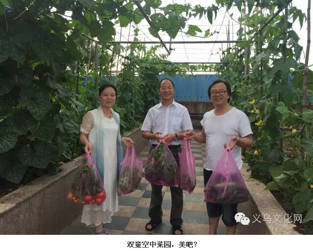 參觀完樣品室,樓總帶我們上九樓露臺雙童菜園,上下兩層兩千平米的樓頂,滿滿種了絲瓜、番茄、長豆、木耳菜、生菜、辣椒還有葡萄等數(shù)十種蔬果,郁郁蔥蔥像個小農(nóng)場,樓總走入菜園給我們摘了絲瓜、黃瓜、茄子,夫人早在二樓摘起來圣女果,看她吃得滿口香甜的樣子!真是醉了!早聽過樓總利用樓頂改造種菜,滿足自身常年需求,樓頂一樣經(jīng)過精心設(shè)計、防漏處理后堆上一米二的泥土,種一年四季蔬果,用企業(yè)里砍伐下來的樹枝碎屑和剩菜飯等進行發(fā)酵,幾個月后成為蔬果種植的最環(huán)保的有機肥!