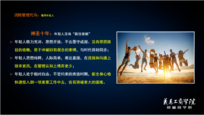 年輕人思想純粹,人際簡單,表達(dá)直接,在連接和溝通上效率更高,在管理認(rèn)知上博弈更少;