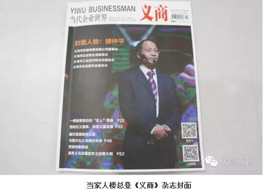 昨天,當家人樓總遞給吸管妞一本雜志。妞一看,喲呵,這封面不就是當家人嗎?仔細一瞧!原來是《義商》雜志呢!全本70頁的雜志里,有近10個版面的篇幅介紹了雙童!下面吸管妞就帶大家來看看這本雜志吧!