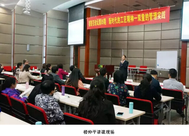 417日下午,受南京大學商學院名譽院長趙曙明教授的邀請,義烏雙童吸管當家人樓仲平為南京大學德魯克論壇和思維會的會員們分享了一堂精彩絕倫的課程《隱形冠軍背后的匠人之心》。