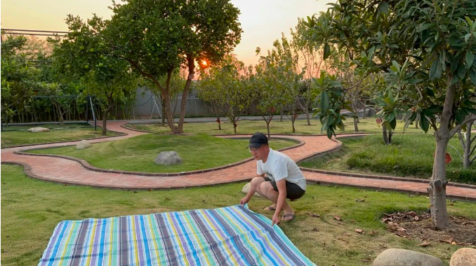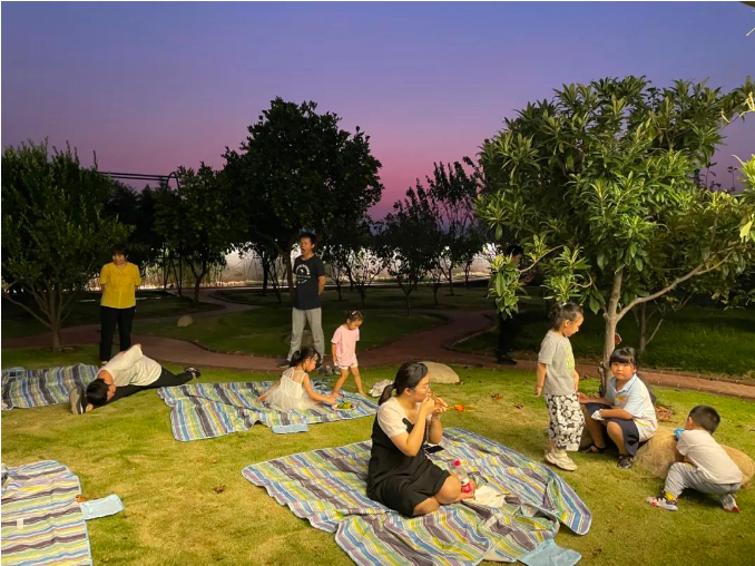 酒足飯飽后,“雙童”人在草坪上度過這閑適的夜晚
