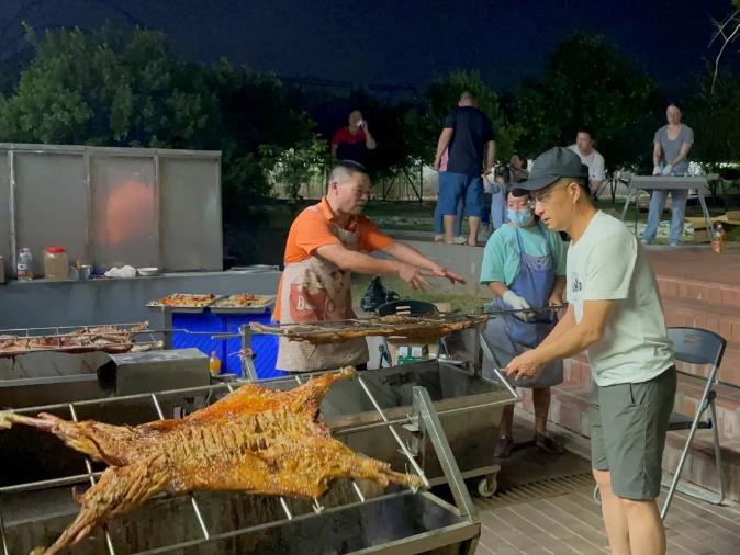 秋意漸起,微風(fēng)習(xí)習(xí),但大家聚在一起,燃燒的火焰和沸騰的熱血讓整個氣氛依舊火熱!樓總還大展身手烤起了烤全羊,加上孜然美滋滋的!火焰“飛舞”,肉香四溢,專業(yè)范兒十足!