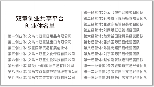 雙童創(chuàng)業(yè)共享平臺(tái)名單