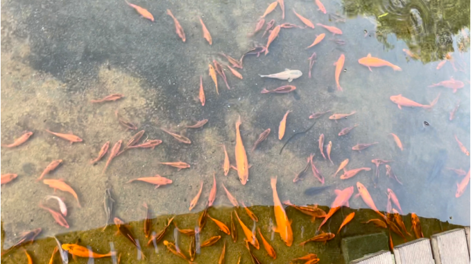 這新的湖水一更換,才發(fā)現(xiàn)原來湖里多出了這么多小魚!瞧,上百條手掌長的小錦鯉正在湖里嬉戲,看來這塊地方確實是風水寶地,原先的魚兒們都過得很舒適呢!