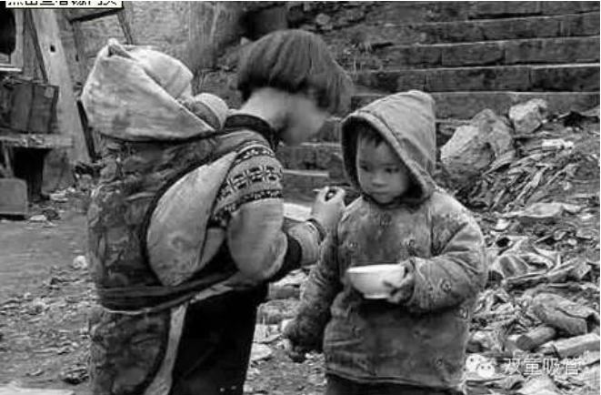 一天中午也是放學(xué)回家,打開(kāi)鍋蓋又是那個(gè)紅薯干飯,卻看到鍋邊上有個(gè)白色的小搪瓷罐,罐邊上還沾著一兩顆白米飯。哎呀,那是不得了的,你們有白米飯吃,為什么我沒(méi)有白米飯吃?然后我死命的哭,死命的鬧,跑出去繞著整個(gè)村子哭,邊跑邊喊,你們有白米飯吃,而我沒(méi)有白米飯吃。