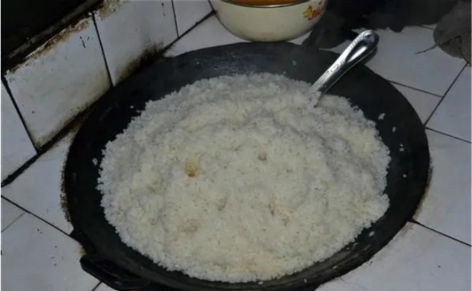 1975年,已經(jīng)十歲的我中午放學(xué)回家,打開(kāi)鍋蓋還是那個(gè)紅薯干飯,用爛紅薯刨成絲晾干之后,放在秋冬青黃不接時(shí)燒的飯,基本上沒(méi)有大米,整個(gè)下半年每天就吃這種飯,很苦,一股爛紅薯的酸臭味,我都吃厭了。