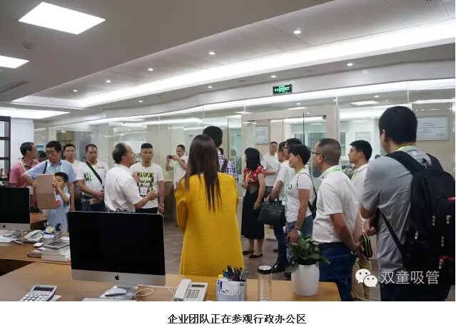 參觀的第二站,是我們的辦公區(qū)?;诰?xì)管理的需要,我們辦公室都是今年最新改造裝修完成的哦!細(xì)膩簡(jiǎn)約、極致精細(xì)的辦公環(huán)境里,七八十號(hào)行政員工都在這里進(jìn)行集中辦公,連當(dāng)家人樓總和幾位高層領(lǐng)導(dǎo)都從獨(dú)立辦公室里解放出來(lái),坐在一起辦公啦!看到這樣的辦公室,大家都紛紛稱贊雙童的和諧開放辦公氛圍。