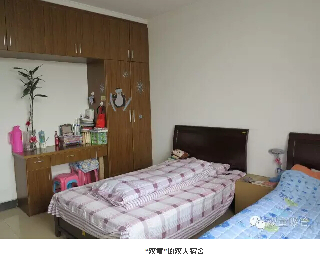 在看到我們宿舍鏡面的寢室地面和通道、配置齊全的洗手間和寬敞明亮的洗衣陽(yáng)臺(tái)、整套的木質(zhì)家具、還有我們當(dāng)家人樓總親手設(shè)計(jì)的不銹鋼高低床鋪,眾人再也“淡定”不起來(lái)了!