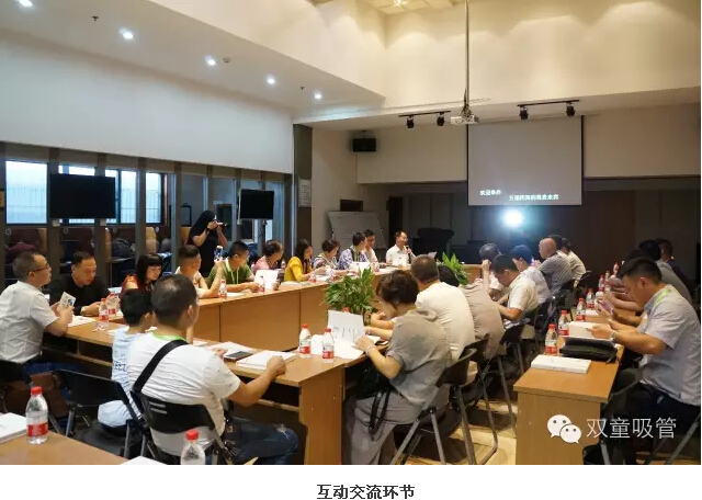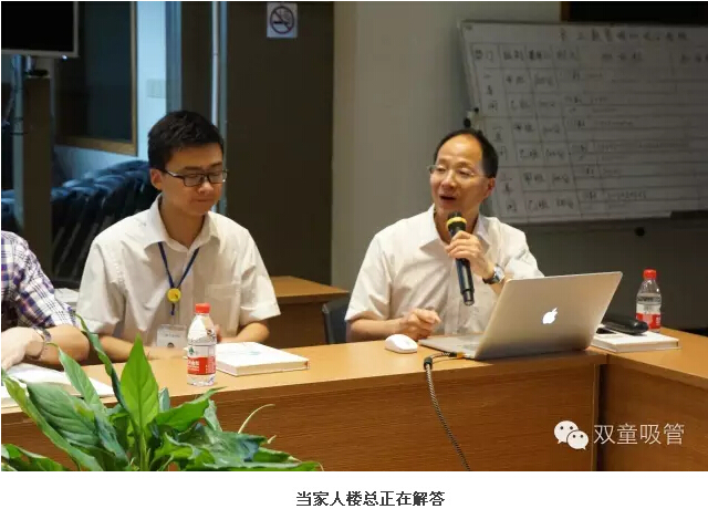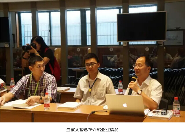參觀后,大家也來(lái)到了九樓閣,與兩位當(dāng)家人進(jìn)行深入交流,互動(dòng)提問。首先,當(dāng)家人樓總圍繞雙童的發(fā)展歷程和經(jīng)營(yíng)理念進(jìn)行分享,同時(shí)介紹了雙童的創(chuàng)新工作和五年發(fā)展規(guī)劃。
