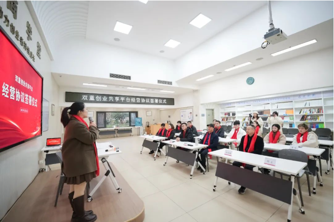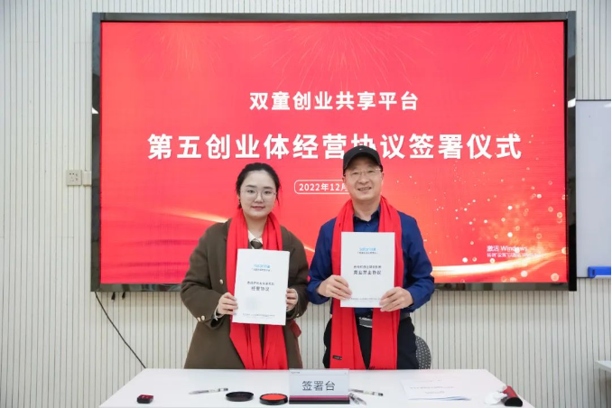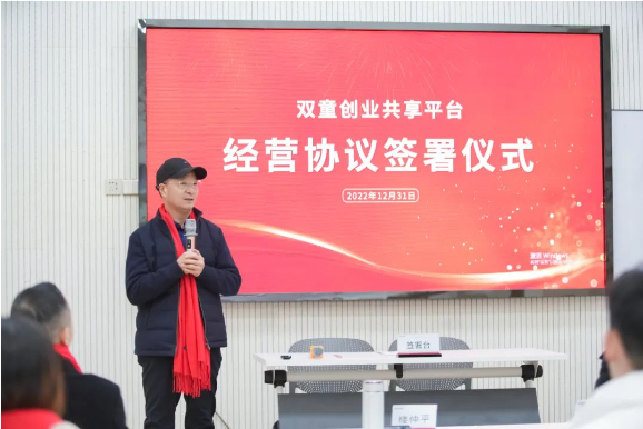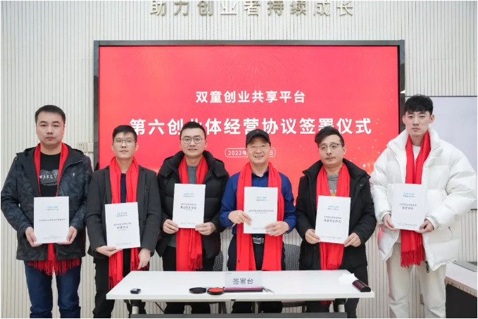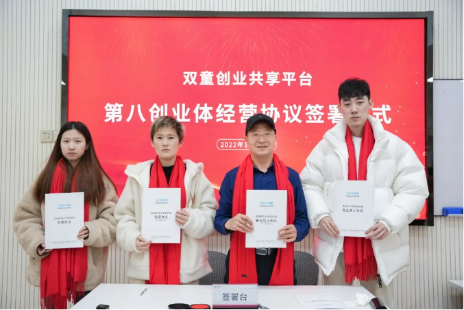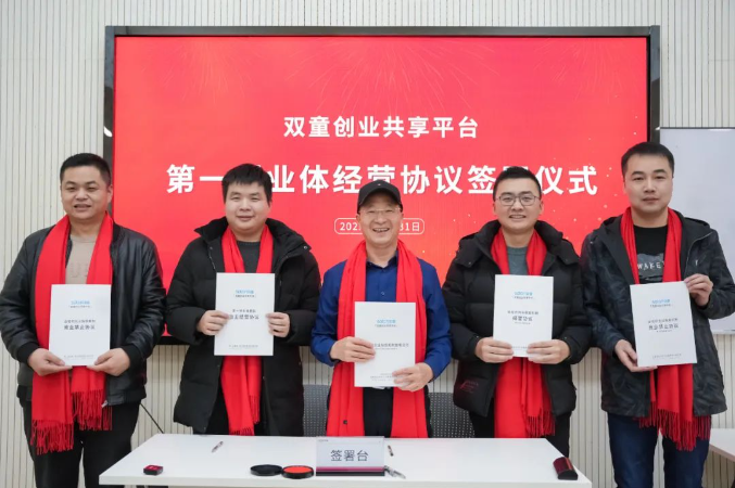 “雙童創(chuàng)業(yè)共享平臺(tái)”經(jīng)營(yíng)協(xié)議簽署儀式合影