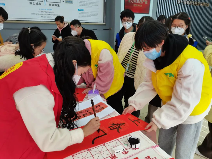 活動現(xiàn)場人太多了,書法老師都要寫不過來了