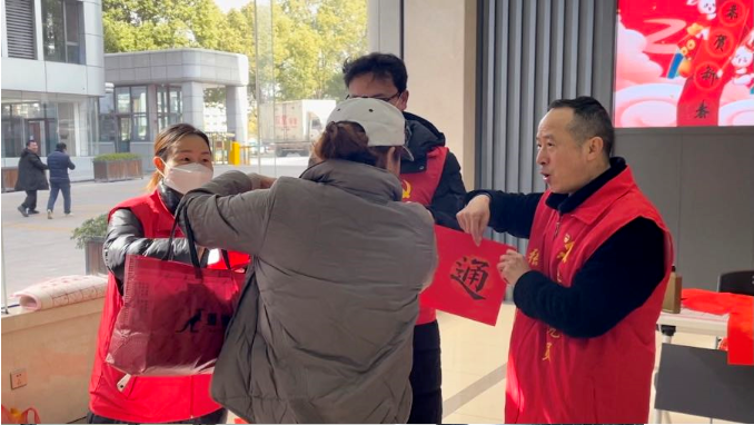 為了讓更多人感受到這樣的溫暖,雙童黨支部書記張國俊帶領(lǐng)支部黨員一起送對聯(lián)上門,給在崗位辛勤工作的員工送上新春祝福。“手寫的春聯(lián)真的很好!這樣的春聯(lián)既好看又喜慶,是傳統(tǒng)的年味兒。祝愿大家過個(gè)好年!”領(lǐng)到春聯(lián)的職工吳哥欣喜不已,臉上洋溢著幸福的笑容。