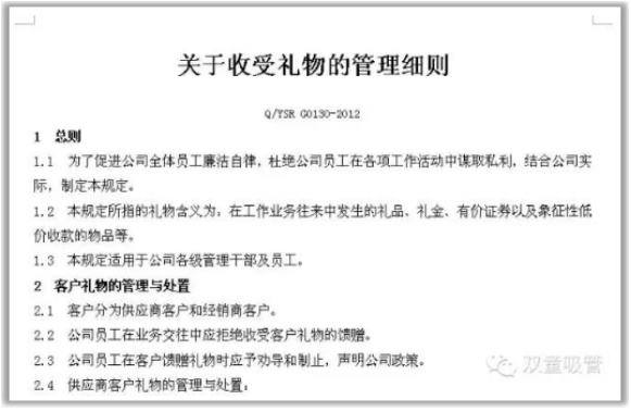 《關于收受禮物的管理細則》部分內容