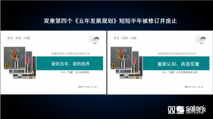 2010年,樓仲平在理解人性活力的“自然遞減”的現(xiàn)象以及經理人老化自然規(guī)律后,下定決心通過《雙童五年發(fā)展規(guī)劃》的組織變革來實施解決“經理人老化”問題:明確扶植年輕干部,選拔培養(yǎng)優(yōu)秀的年輕領導層,解決二代傳承接班等問題。