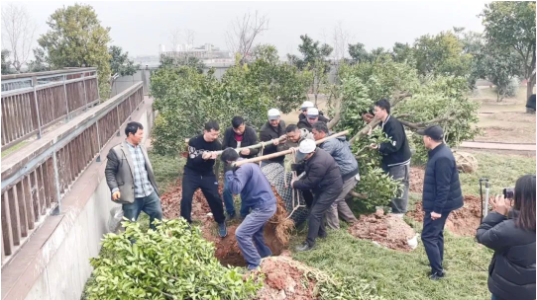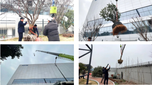 這些“龐然大樹”可不是一兩個人就能扛得動的,“雙童”可是召集了二三十位“大力士”在樓頂上接應(yīng),一同栽種,栽種這些樹木可是一項大工程!