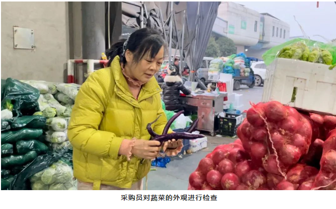采購現(xiàn)場(chǎng),每一種菜品都要經(jīng)過采購員的嚴(yán)格檢查,不僅是要對(duì)品種進(jìn)行對(duì)比,選出最好吃的種類,還要考量菜品的質(zhì)量,外觀得要好看,不管是茄子還是土豆都要有“顏值”。